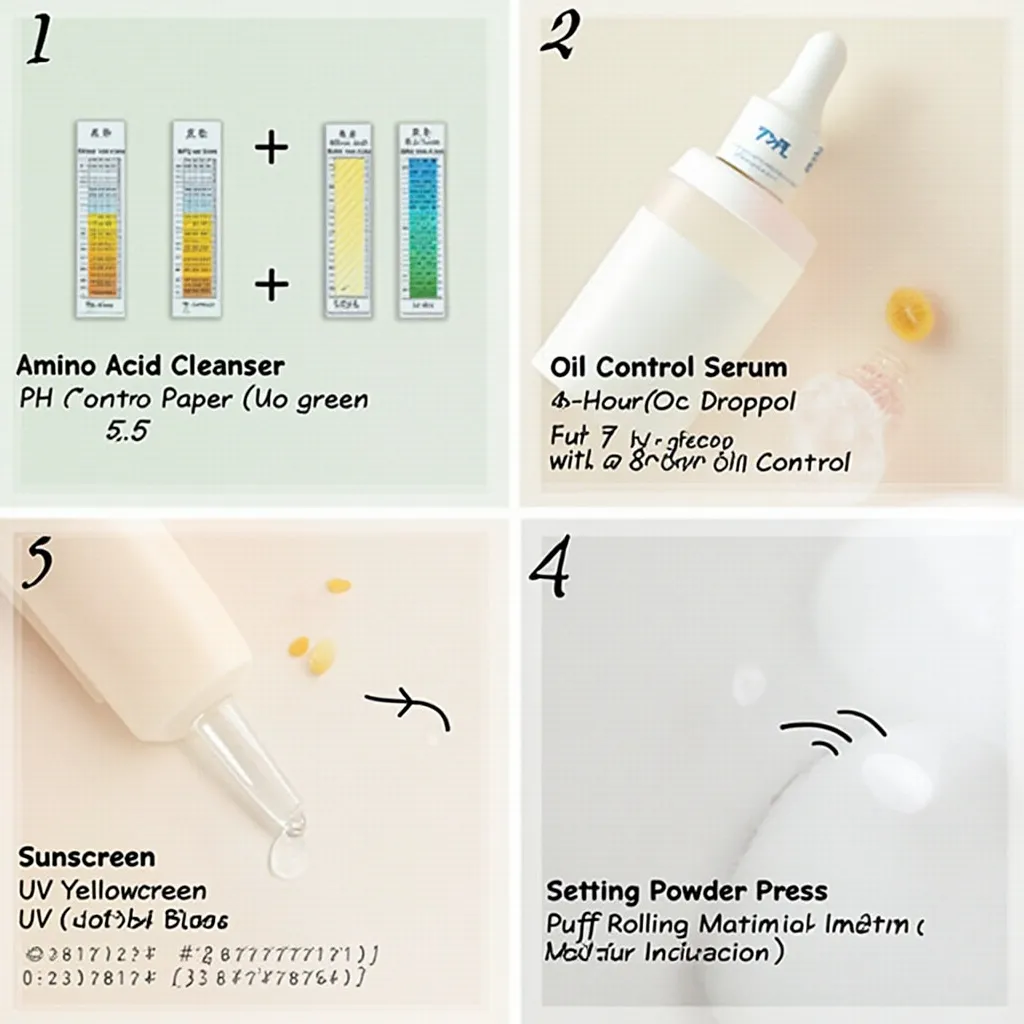 ② 控油精华:滴管特写+「8小时控油」标签